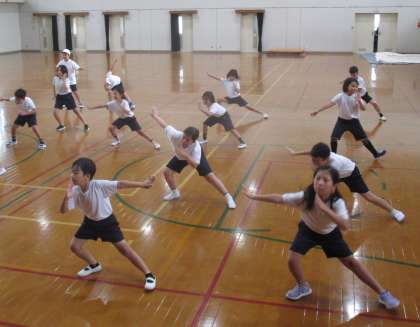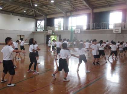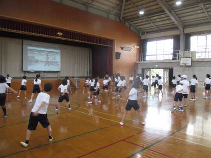 3・4年生が体育館で「京炎そでふれ」の練習をしていました。曲のテンポが速くて難しいですが、初めから最後まで通して踊ることができました。これから細かい動きを確認しながら練習を重ねて、かっこいい踊りに仕上げていきます。