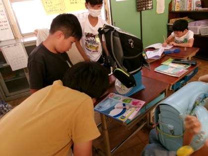 重さの学習では、単位の換算や計算などはもちろんですが、「量感」を養うことも大切なポイントのひとつとなります。2キロ測りを使ってランドセルを測ったことをもとに、「1キログラム」を作ろうと、砂を袋に入れて測ってみました。ほとんどのグループは「これぐらいかな?」と思った重さがまだまだ1キロに満たないものばかりでした。「1キロってまだまだなんや」「こんなに入れるの??」と自分の思う1キロとのギャップに驚いている人も多かったです。できた1キロの砂をもってみて、次は「1キロくらいなものを身の回りから探そう」という活動をします。