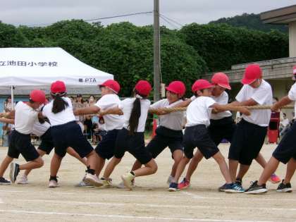 ひさしぶりに復活したつなひきの様子です。5・6年生とともに頑張りました。「せーの!」の掛け声で一生懸命引っ張りました。