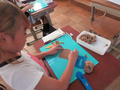 3年生は、社会科の学習で工場でつくられるものの学習をしています。生八つ橋はどのようなものか実際に見て、どのように作っているのか粘土を使って予想しました。手作業だと時間もかかり大変だなという感想が聞こえました。