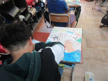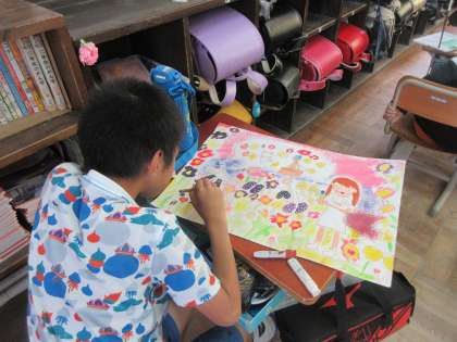 お話の絵がどんどん完成に近づいています。みんな集中して一つ一つ丁寧に色を塗ることができていました。華やかな世界が出来上がりそうです。