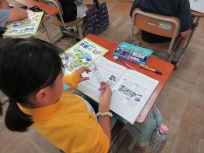 700年以上続く祇園祭の山鉾巡行には、どんな人が関わっているのか調べました。地域の人だけでなく学生や社会人などたくさんの人が関わっていることを知り、関わっている人への思いまで考えることができていました。