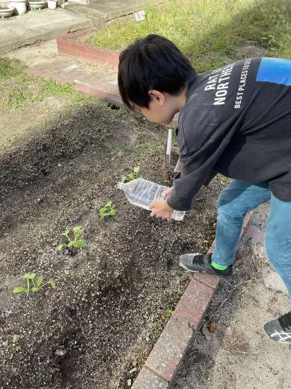 先日、畑に大根の種を植えました。かわいらしい芽がでてきました。同じくほうれん草もちらほらと芽が出てきました。ピーマンはあいかわらずよく成長し、毎日10個ほどの収穫をしています。