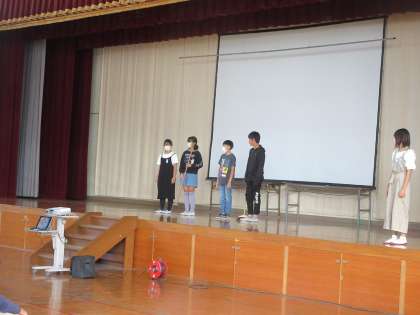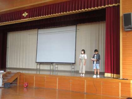 ⒑月の目標は「ほうきの使い方を知って、学校をきれいにしよう。」です。正しいほうきの使い方を代表委員が紹介してくれました。来週の月曜には、われらエコファミリーもあります。みんなで協力して学校をきれいにしましょう!