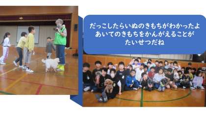 最後は、一人ずつお散歩もできました。「わくわくした顔で見てくれたよ」「だっこしたら犬の気持ちがわかったよ」「なかよくなれてうれしかった」と1時間で多くのことを学んでいました。また、来年会えるといいですね。