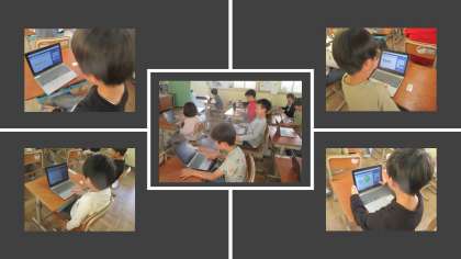 タブレットを使って、算数や国語の復習をしています。ミライシードの使い方にも慣れてきて、みんな楽しく学習しています。同じ問題に何度も挑戦したり、新しい問題に挑戦したり、自分のペースで頑張っています。