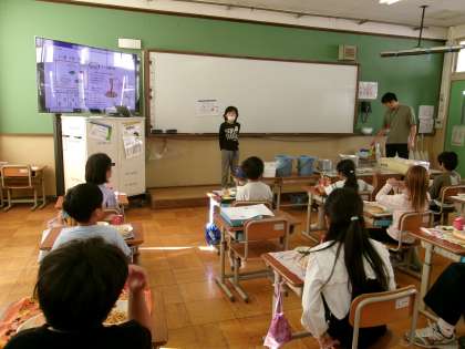 今日の給食は、「牛乳」「小型コッペパン」「ソース焼きそば」「小松菜のごま油いため」でした。ソース焼きそばはけずり粉の風味がとても効いていて、子どもたちからも大人気でした。今日も残さずたくさん食べていました。