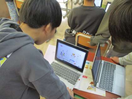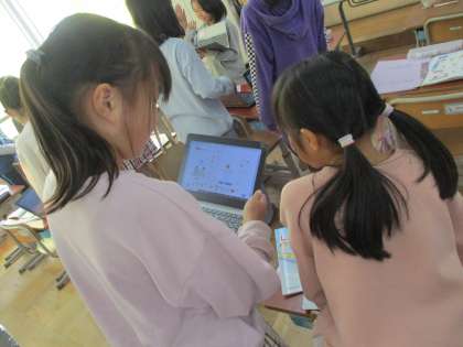 学習しています。今日は、友だちとほしいフルーツをたずね合い、オリジナルパフェを作りました。それぞれの個性があって、かなり盛り上がっていました。