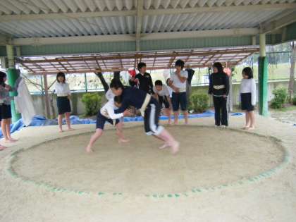 6年生は、勝ち負けににこだわらず、何度も何度も先生チームと相撲をとり、最後のすもうを楽しみました。