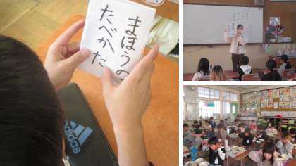 食の指導で「まほうのたべかた」を学習しました。苦手な食べ物が少しでも食べられるように、自分だけの「まほうのじゅもん」を考えました。給食の時間には、みんなまほうのたべかたの本を準備していました。その成果があって、いつもより早く全員が時間内に給食を食べ終わることができました。すごいですね。これからも、好き嫌いなくしっかり食べて、成長してほしいです。