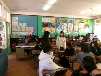 6年生は外国語で「My best memory」の学習をしています。今日の学習では、自分の思い出をペアの人と英語で交流しました。