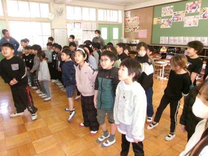 19日(金)に行われる、池田小学校50周年記念式典に向けて、歌の練習をしました。1・2年生と4・5組さんがいっしょに「ありがとうの花」を歌います。元気いっぱい、大きな声で歌えるように頑張っています。
