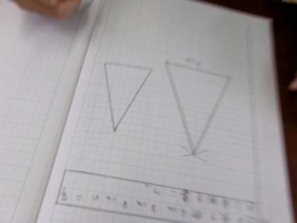 コンパスを使って二等辺三角形を描きました。描き方を覚えると、スイスイ上手に描ける人が多かったです。正三角形も同じようにして描けばよいことが分かりました。