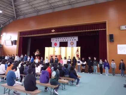 5年生と6年生は「お祝い祭り」と題した発表をしました。5年生はお祭り気分を盛り上げる詩の群読をし、6年生は池田小学校伝統の「IKEDAロックソーラン」を力強く踊りました。