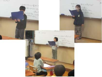 今日の参観では、お母さんのお腹の中での赤ちゃんの成長の様子を見たあと、自分の成長したなと思ったことや、これからの自分の成長への願いを一人一人が発表しました。