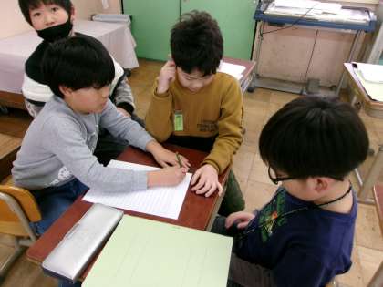 地域の方々が自分たちのために見守りや挨拶などをしてくださっていることに対し、自分たちにできることを考え、その実現に向けて取り組み始めています。日常の挨拶や自分たちの学習に励むことはもちろんのことですが、何かお礼の気持ちを伝えたい!とグループに分かれて生き生き活動しています。次に地域の方々と交流できることをとても楽しみにしている3年生です。