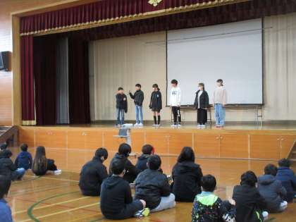 今年度最後の児童集会がありました。代表委員の6年生からは、1年間の成果と今後頑張ってほしいことを下級生に向けてしっかりと伝えてくれました。保健委員会や環境委員会からも表彰のお知らせをしてくれました。どの委員の方もよく頑張ってくれました。