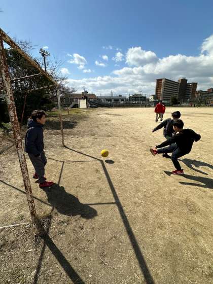 ボールを相手にパスをしたり、外に出て元気に活動しました。
