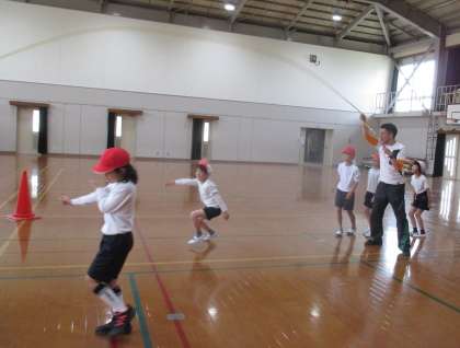 3年生になって初めての体育の時間でした。運動をする前には、けがを防ぐためにしっかりストレッチをしました。その後、大なわで8の字とびを楽しみました。みんなリズムにのって、どんどん跳ぶことができました。