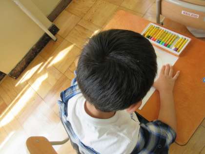 自分の似顔絵を描きました。学級目標にあるにこにこした笑顔の自分です。紙を上手に回しながら、すみずみまでしっかり塗ることができていました。学級目標のまわりに掲示するので、楽しみにしておいてくださいね。