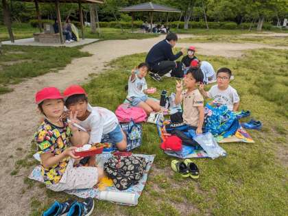 京都タワーを満喫し、梅小路公園に来ました!歩き疲れたので少し早いですが、お弁当です!
