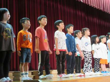 1年生を迎える会がありました。上級生のクイズやダンスの発表に子どもたちは大喜び!自分たちの発表は、緊張したようですがセリフもさんぽも上手にできました。はなまるです。