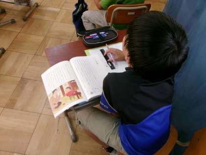 4年生の国語の学習で「一つの花」を読み進めています。登場人物の気持ちがわかるところや世の中の出来事がわかるところに線を引いて学習しています。自分の考えを述べるときに、本文を根拠にできるように頑張っています。