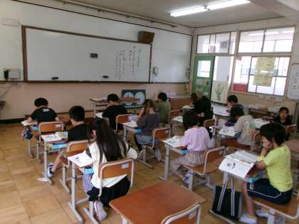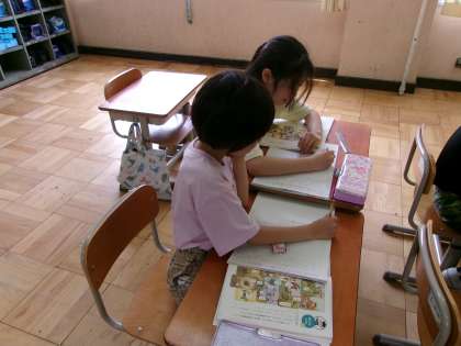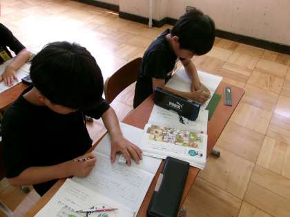 国語の学習で、2年生までに学習した漢字を使って物語を作りました。ペアで順番に1文ずつ協力して作ることができました。