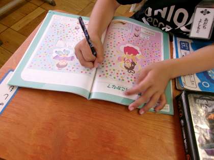 たし算とひき算の復習をしつつ、新しい単元に入っています。もうすぐ七夕・・・ということで教科書にあるたくさんの星の数を工夫して数えるところからの学習でした。「5ずつ数えたらいいかな。」「10のまとまりを作ったらいいんじゃない?」などこれまでのことを思い出しながら数えました。星は365こあることがわかりました。365を漢字で書くと「三百六十五」ですが、「三六五」と書く人が多く、明日はその練習をいろんな数字でしていきます。