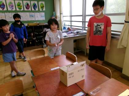 昨日はたてわり遊び「友だちの日」がありました。6年生のリードで楽しい遊びをできる月一回のうれしい機会です。ペットボトルキャップを段ボールの箱に投げ入れる遊びはとっても盛り上がりました。次は体育館でどんな遊びができるかな・・・楽しみですね