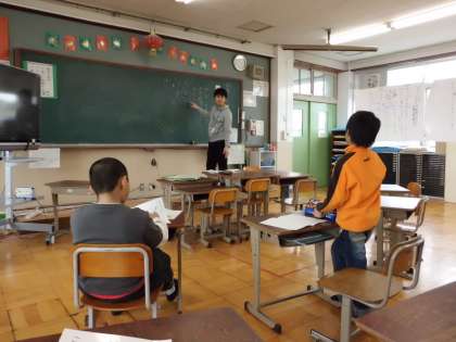 2年生の国語の「今週のニュース」の学習で、立派な2輪の花を咲かせて話しました。