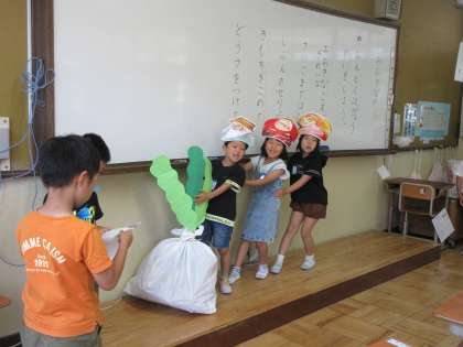 先週、おおきなかぶの音読発表会をしました。やってみると、楽しかった!もっとやってみたい!6年生にも見てほしいな!などという声がありました。次の「おむすびころりん」の音読も楽しみです。