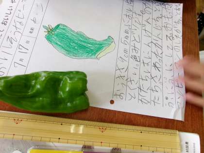 畑の野菜がどんどんできています。ほとんどの人が一度は持ち帰ったことだと思いますが、特にピーマン・オクラは立派です。なすは少し日に焼けてしまっているものもありますが、まだ水分をしっかり含んでいるのではと思います。