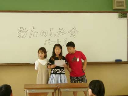 1学期終了まであと少し。もう少しで夏休みということで、ドリルの仕上げに頑張っている2年生。今日は初めてのお楽しみ会をしました。「お楽しみ会やってみ隊」の3名がリードして司会進行をしてくれました。みんな嬉しく興奮していたのでなかなか司会の言葉が届かず苦労していたところもありましたが、話し合って決めてくれた音楽でいす取りゲーム、ストップゲームを楽しみました。続きは明日です。明日も楽しみですね♪