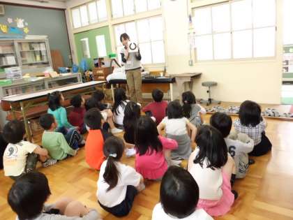 1年ぶりの視力検査で「見えるかな〜」とドキドキしながらも、しっかりと先生の話を聞き、まずは大きい絵で練習しています。