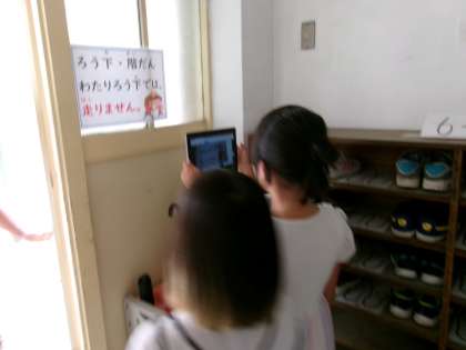 町の中にある看板やポスターは、必要な情報を分かりやすい文字や色、絵などで工夫をして表すことで見る人に大事なことをしっかり伝えることができるということを前の時間に学習しました。今日は学校にもそのような工夫がされた看板やポスターがないかをグループで探しに行きました。そして写真を撮って、何を伝えるものなのか、どのような工夫がされているのかを話し合いました。「ろうかを走らない」ことをぶつかったら危ない、という絵でより分かりやすく知らせたり、必要なところだけ赤字にしていたりと身近なところにもそのような工夫があることに気がつきました。