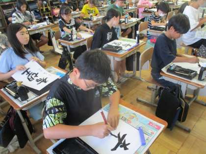 画数が多く、初めは上手に書けるか不安な表情をしていた子どもたちでしたが、いざ書き始めると「バランスよくかけた!」「思ったより簡単やった!」と今までの学習を生かして自信をもって書くことができていました。