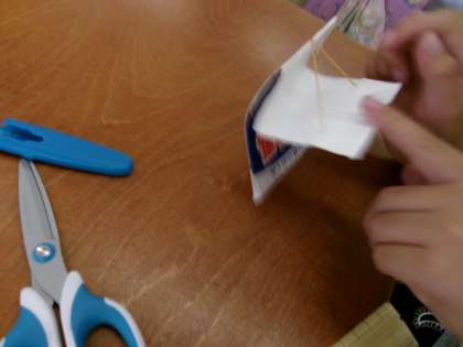 身近なものを使って遊びを試しています。今日は牛乳パックなどのかたい紙とゴムを使ってぴょーんととび上がるおもちゃ作りをしてみました。ゴムのかけかたや、とばし方を工夫すると高くとんだ!と声が上がりました。とばし合いっこをして楽しみました。