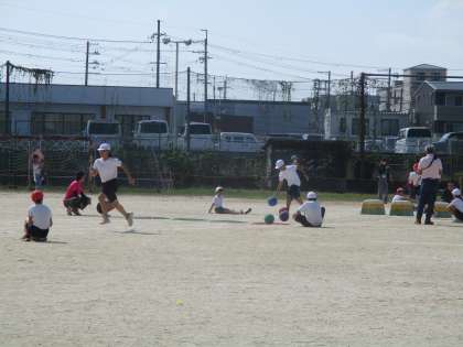 ボールを使ったりハードルを越えたりして走り切りました。