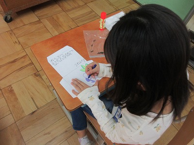 とれた朝顔の種は封筒に入れて来年の1年生のためにお手紙を書きました。1年生喜んでくれるかなと少しお姉さんお兄さんの姿が見られました。