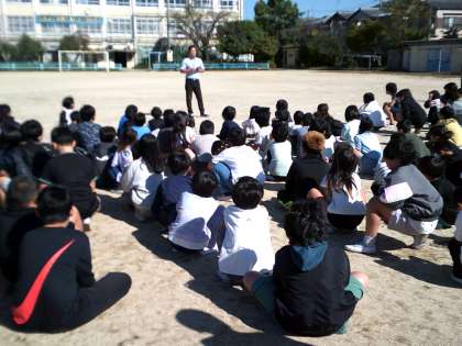 本日、火災を想定した避難訓練がありました。口をハンカチで抑えて避難した後、校長先生から今日の訓練について、真剣に取り組むことができていたかどうか振り返りがありました。実際に何か起こったときは「お・は・し・も・て」を守って落ち着いて行動することを心がけましょう。