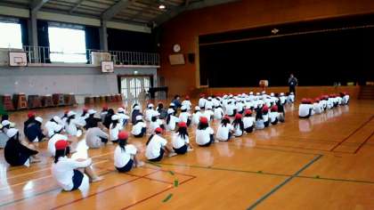 初めてのことに,5年生は緊張気味でした。