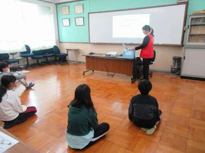3・4時間目は三菱自動車工業株式会社の方にゲストティーチャーとしてお越しいただき、環境と人に優しい車づくりについて学びました。