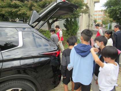 実際に電気自動車に試乗したり、内部の説明を教えてもらったりして、電気自動車のしくみをより詳しく知ることができました。