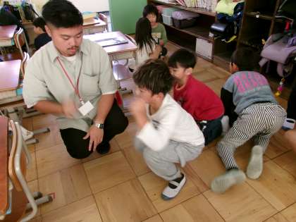 久しぶりにALTと一緒に英語に親しみました。今日は動物の言い方をいろんなゲームで覚えました。進化ジャンケンやアニマルバスケットはとても盛り上がりました。最後のふり返りでは「何回も動物の名前を言っているうちに覚えられました。」という人がたくさんでした。