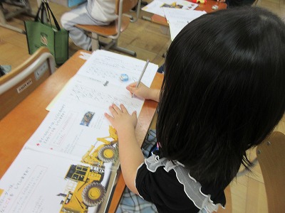 それぞれの自動車の「じごと」と「つくり」を本で調べ、まとめました。「〜なしごとをしています。」、「そのために・・・」などと大切な言葉を忘れないように気を付けて書くことができました。読み合いが楽しみです。