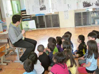 初めは、中国のお話「王さまと九人のきょうだい」の読み聞かせをしました。