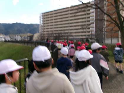 始めに坂があること、川沿いは出来るだけ広がらないことなど注意することを知り、その後は運動場で5分間走をしました。長い距離を走り続けるためには、ペースを考えることが大切です。飛ばしすぎてすぐに疲れて歩いていた人もいましたが、歩かずに走れるように練習をしていきます。