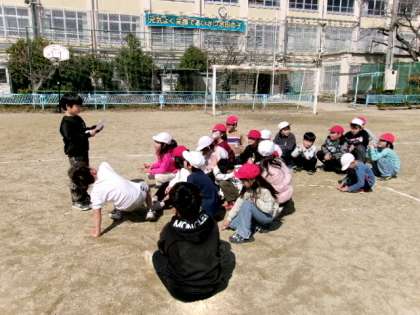「お楽しみ会やってみ隊」のメンバーが運動場でのお楽しみ会を企画してくれました。