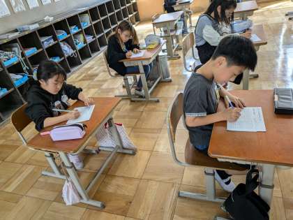 掃除後は寺子屋の時間です。時間いっぱいまで集中して取り組めました。かけ算の百ます計算が終わったら裏面の漢字をします。塵も積もれば山となる、コツコツと積み上げていきましょう